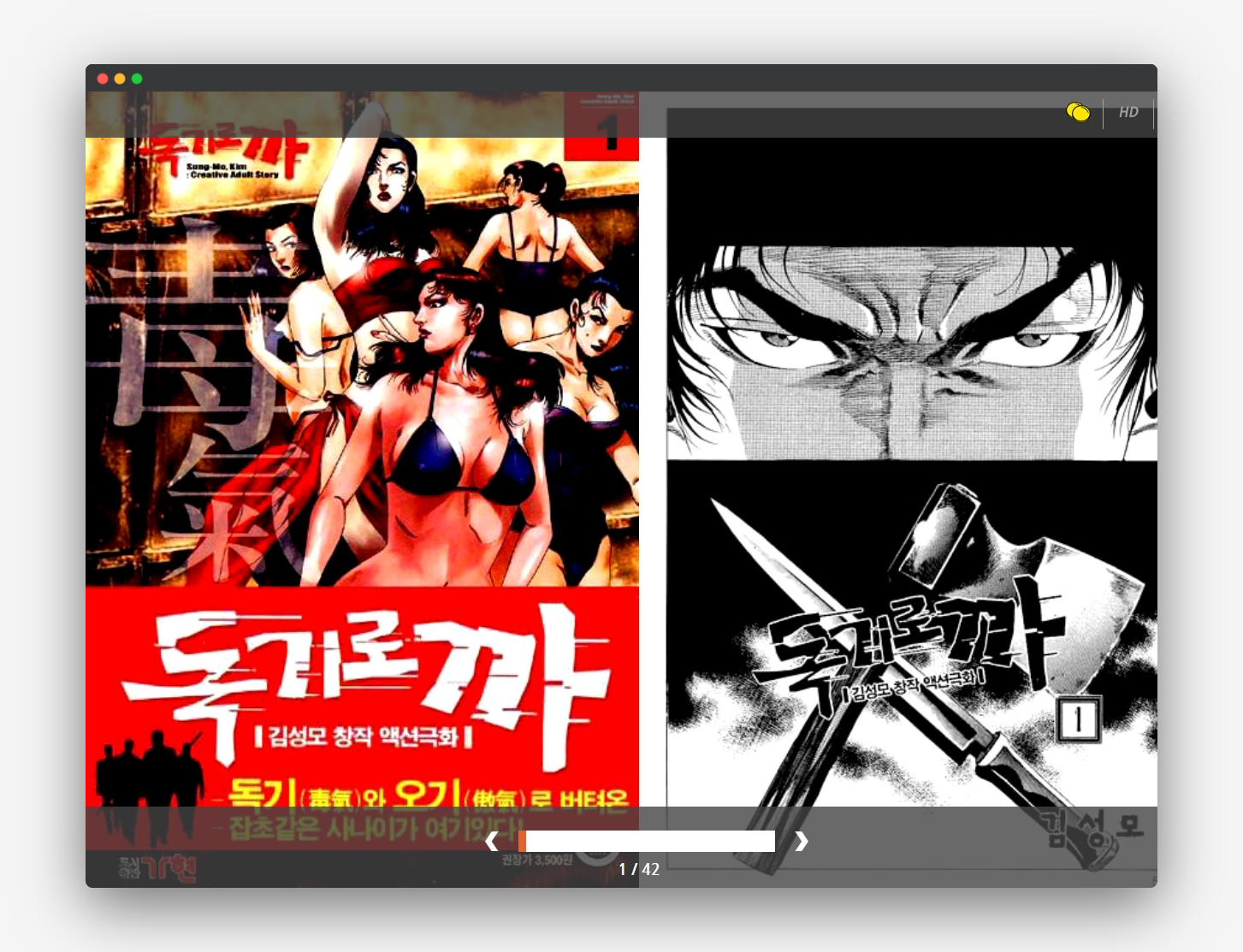 만화책을 누르면 이렇게 뷰어가 나오는데요.
