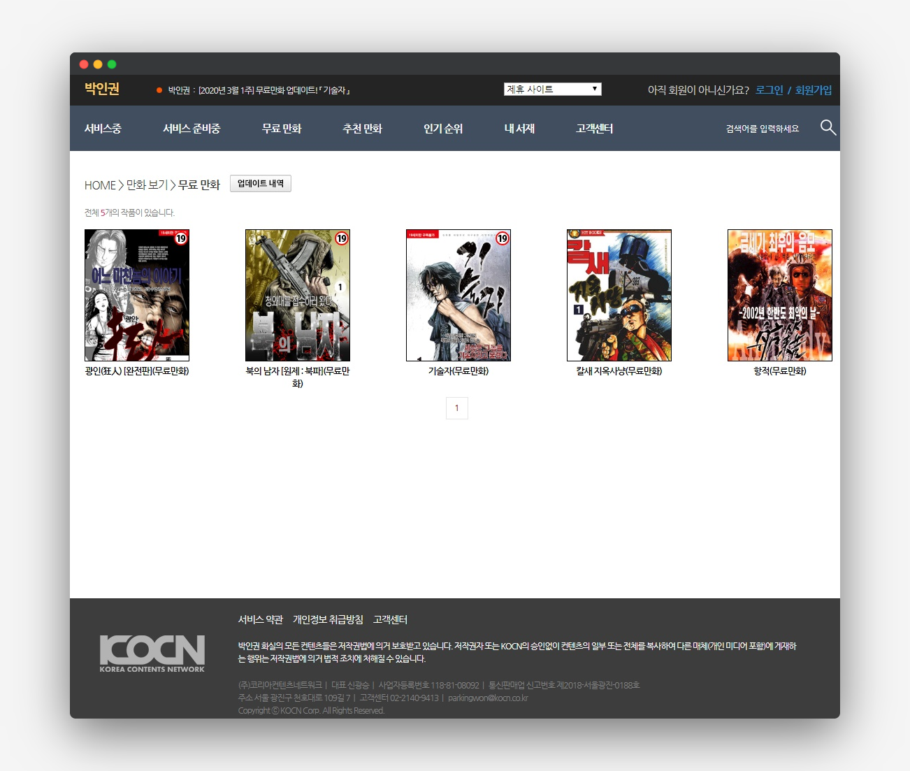 완전 무료 만화 네번째 사이트는 박인권 사이트 입니다. 박인권님의 만화중에 가장 유명한것이 바로 쩐의 전쟁입니다. 이미 드라마로 나왔던 내용이기도 합니다. 대물 시리즈도 있고 국수의 신등 유명한 작품들이 아주 많이 있습니다. 여자 전쟁도 무척이나 재미있게 본 기억이 있습니다.